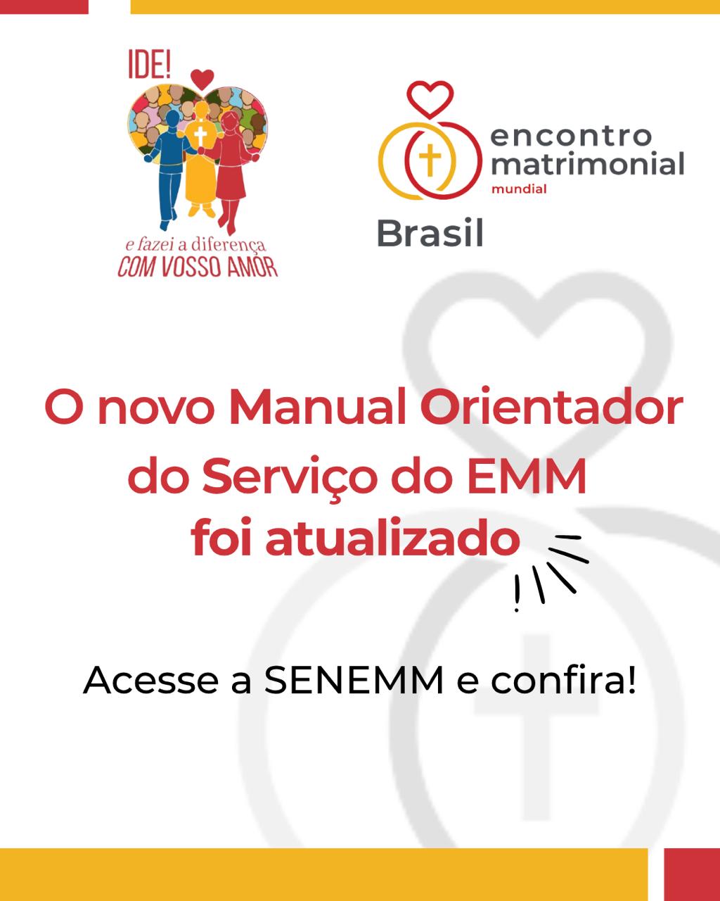 Nos dias 30 e 31 de agosto de 2025, a cidade de Salvador sediará a primeira reunião presencial do Conselho Nacional do Encontro Matrimonial Mundial (EMM) nesta nova etapa de caminhada.O encontro reunirá a Equipe Eclesial Nacional, formada por padre Filip, Eduardo e Suzana, e todas as Equipes Eclesiais Regionais...